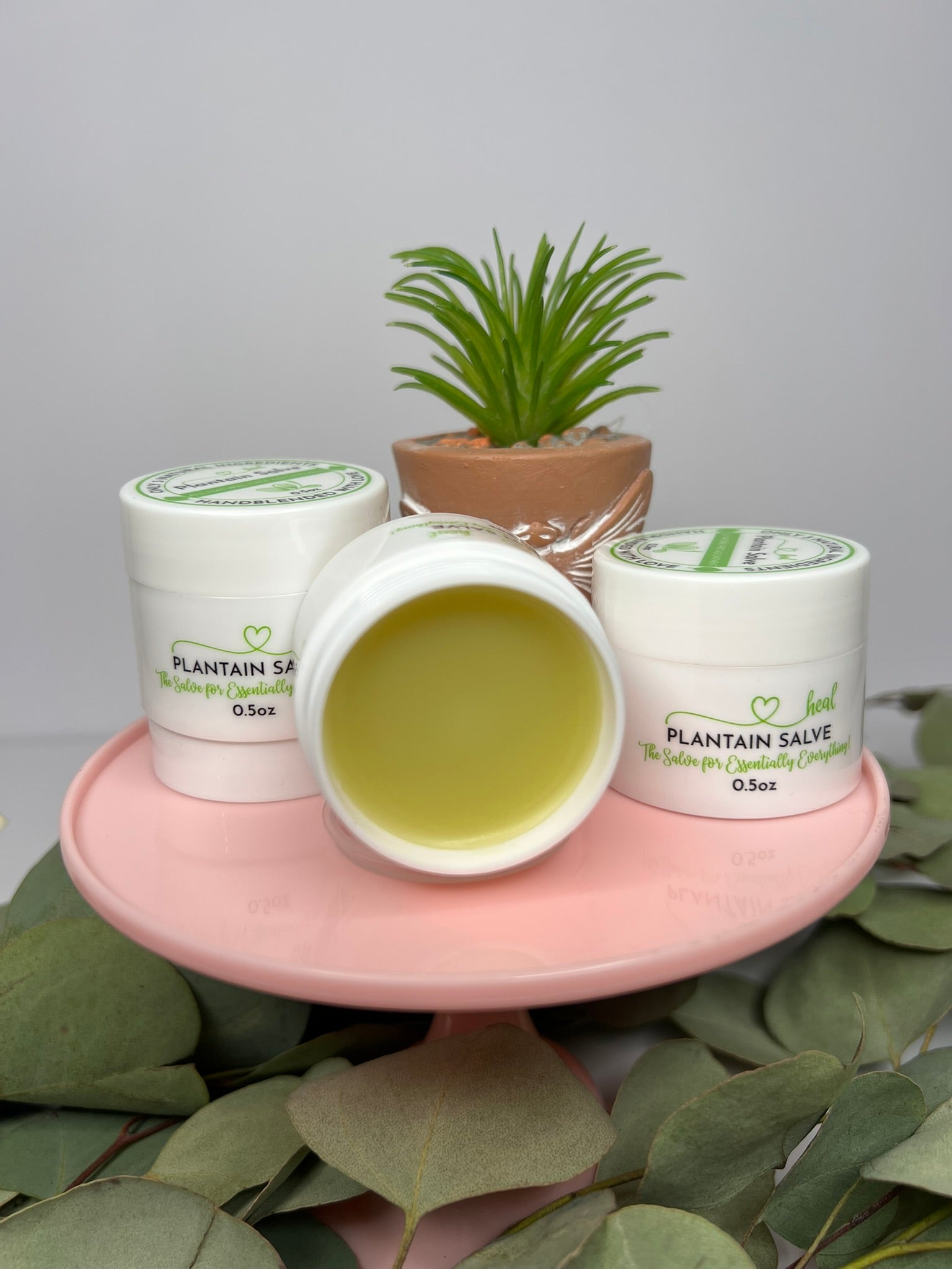 Plantain Salve is used for bug bites and stings, as well as skin irritations including dandruff, eczema & sunburn. Other uses; rashes, diaper rash, bee stings, wasp stings, flea bites, dry elbows, lip balm, poison ivy, scar tissue, ulcers, mastitis, boils, mosquito bites, spider bites, & ant bites.